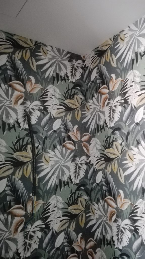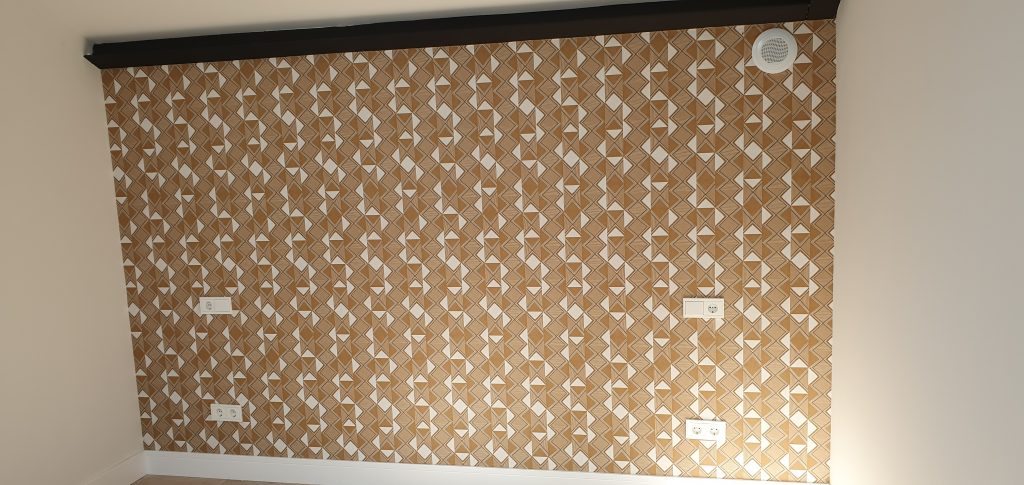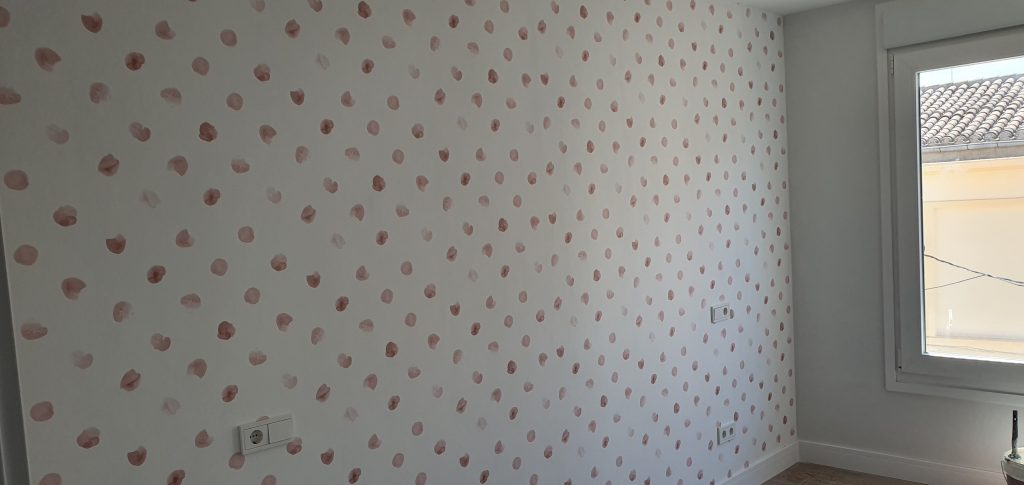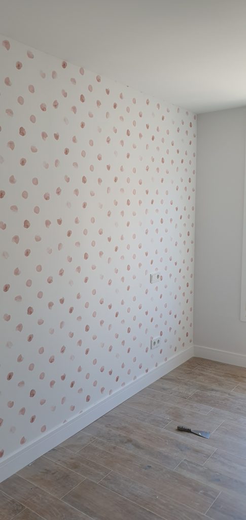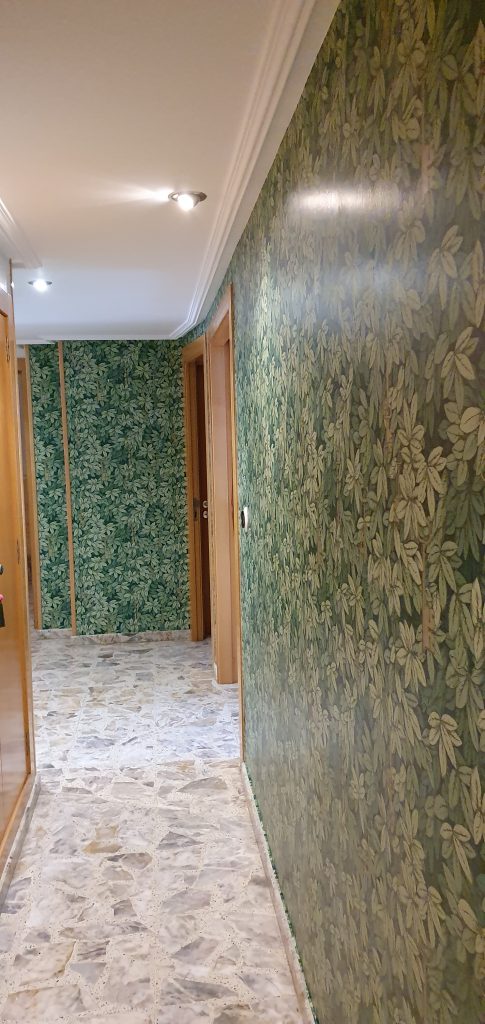 El cliente tenía un piso con paredes con gotele y quiere dale un aire más moderno con papel.